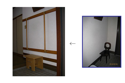 上がり框用手すり ベンチを設けることで靴の履き替えがラクにできます。手すりはベンチへの立ち座りで使用します。 |